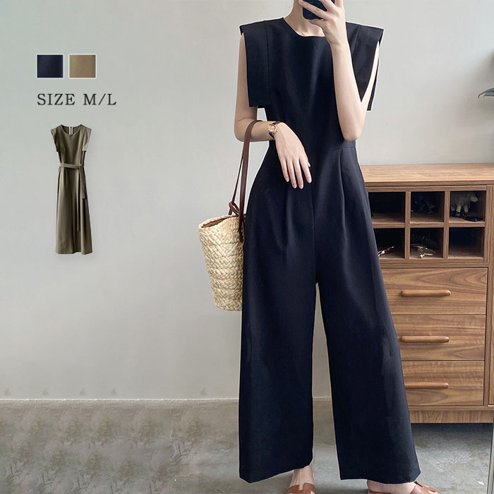 つなぎ パンツ レディース ノースリーブ オーバーオール ワイド ワイドパンツ カジュアル シンプル 定番 大人 ナチュラル オールインワン ゆったり