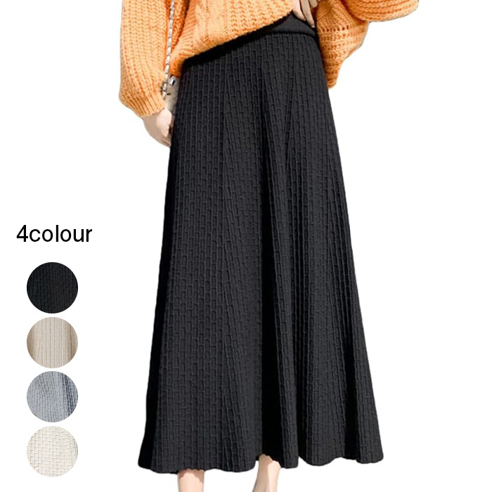 Aライン ニットスカート レディース ロングスカート 秋冬 ウエストゴム ゆったり ボリュームスカート 黒 オフホワイト グレー カーキ色 フリーサイズ