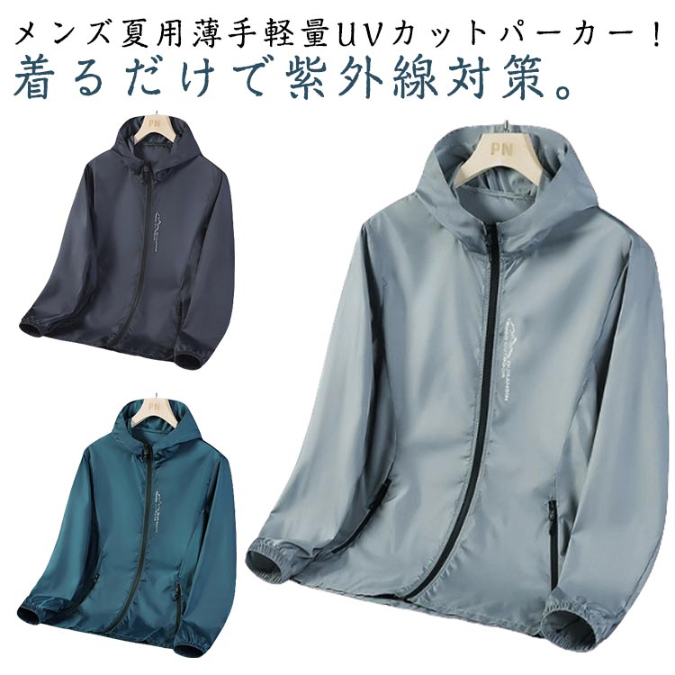 薄手 uvパーカー 夏 パーカー 長袖 UVカット 軽量 薄手 ジップアップ メンズメンズファッション トップス パーカー