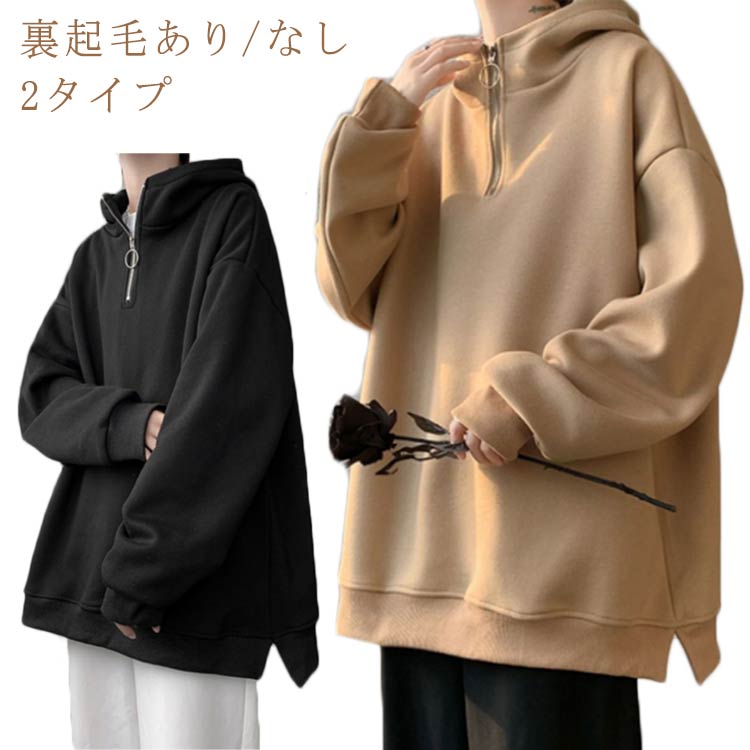 韓国ファッション ストリート ショート丈 パーカー ハーフジップ 裏ボア 長袖スウェットシャツ ハーフZIP スポーツ ダンス 防風 防寒 薄手 厚手 春秋冬