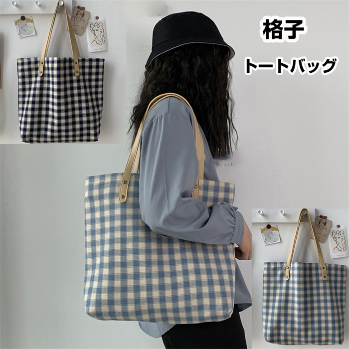 格子 トートバッグ 大きめ キャンバス ショルダー レディース 超軽量 大容量 A4 大きめ くったり 帆布 キャンバス トート ショルダー トートバック エコバッグ 折りたたみ 布