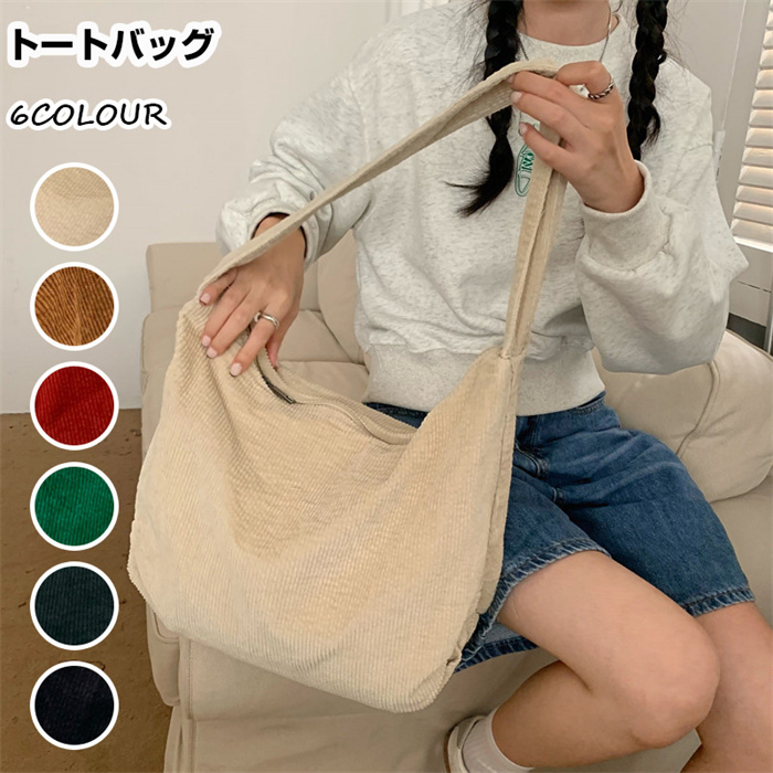 トートバッグ コーデュロイ トートバック 大容量 レディース 超軽量 ショルダーバッグ トートバッグ トート レディース 無地 ファスナー付き オールシーズン
